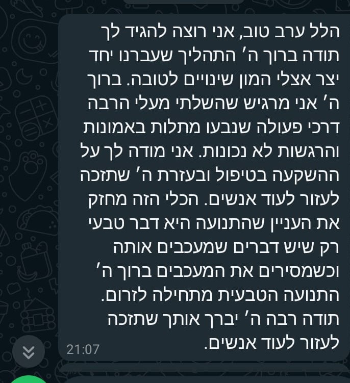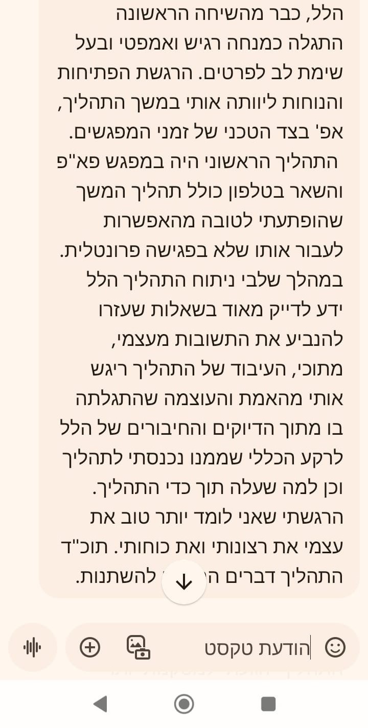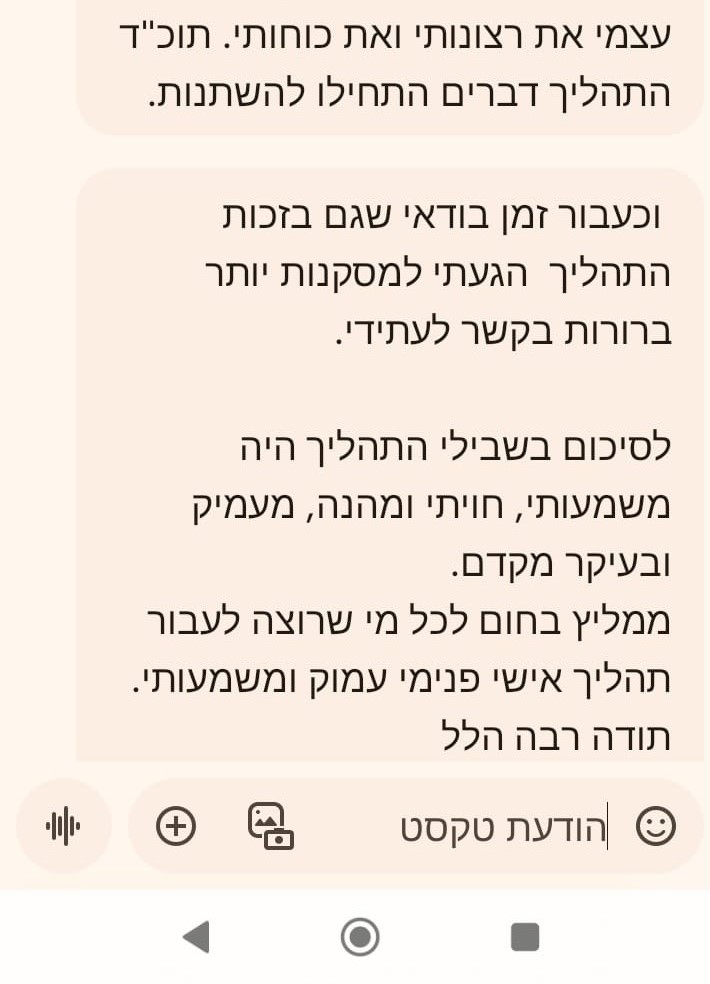 תהליך פרטני ממוקד הכולל 6 מפגשים.